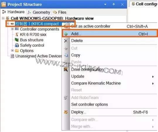 Step 4 選擇KukaExternalKinematics230V → KL100 → Add