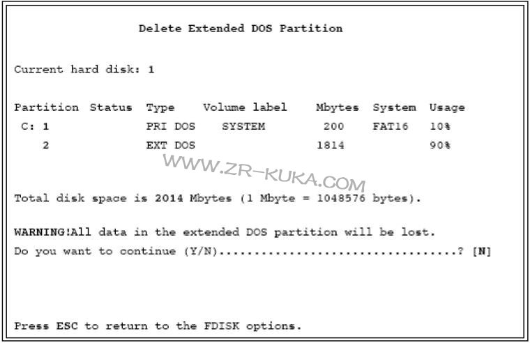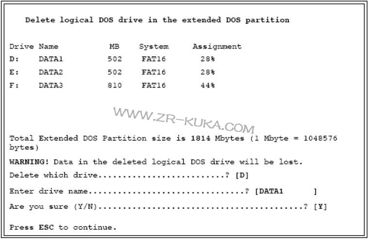 3. 在擴展 DOS 分區(qū)刪除邏輯DOS 驅(qū)動器