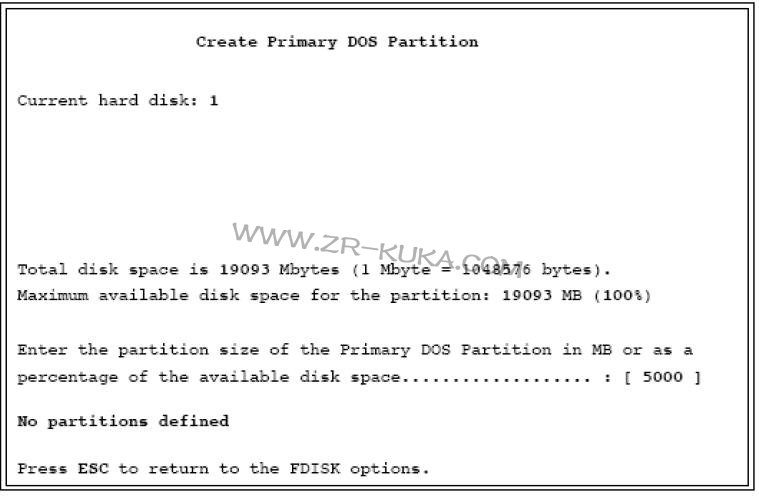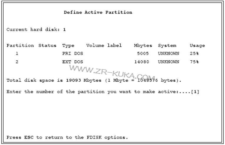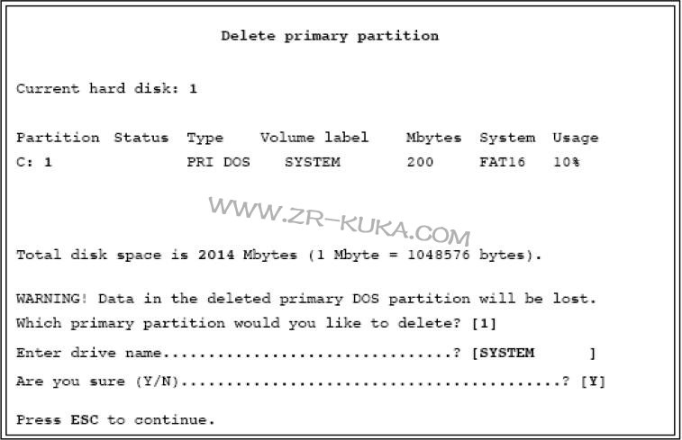一旦刪除現(xiàn)有的分區(qū),硬盤必須用選項“1”分區(qū)。