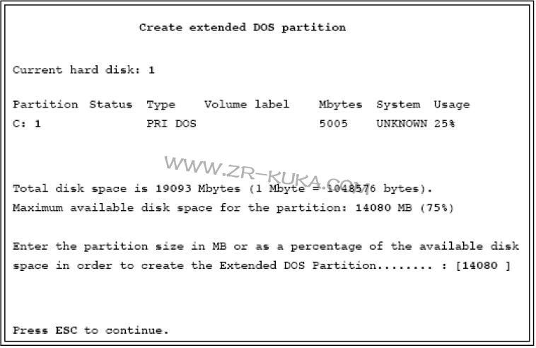 按回車鍵確認想要的大小。按“ESC”鍵返回分區(qū)選項,在哪兒你將定義邏輯驅(qū)動器。