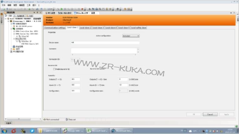 2. 點擊Local slave1 按鈕進入如下的畫面;在這個畫面中我們可以給機器人起一個名字,可以配置有多少個字節的數據和PLC進行數據交換;如下圖,給機器人起的名字為rob,輸入8 個byte, 輸出12 個byte,這是將來要和PLC進行數據交換的字節數;