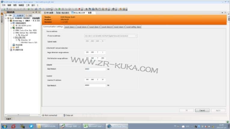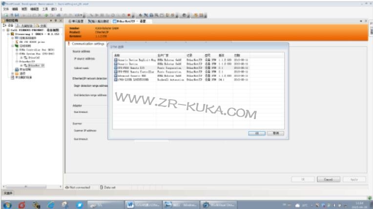 1. 在已經使用workvisual 軟件把機器人的原始的程序和參數上載上來之后,可以看到項目的結構如下所示;雙擊Ethernet/IP ,可彈出如下畫面現在可以建立掃描器,在scanner IP address中輸入機器人的IP 地址192.168.7.27 ,其他選型可以參考如下圖片中所示進行輸入; IP source address 中的值不用輸入, 可以點擊框內下拉按鈕,選擇你電腦當前的IP 地址即可;